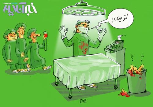 کاریکاتور - عمل زیبایی در کشور ما به اندازه ای انجام می شود که آمار آن از آمریکا و اروپا با جمعیت دو سه برابری شان نسبت به ایران هم بیشتر است.جراحی بینی متداول ترین این عمل هاست. / طرح از فیروزه مظفری