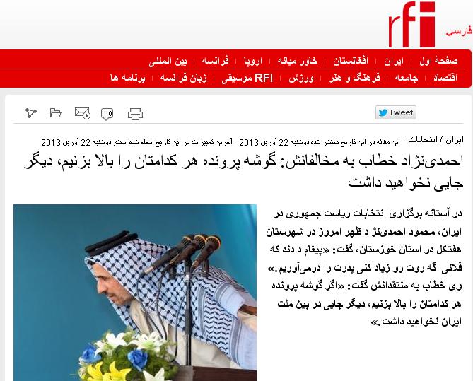 "گروه سیاسی صراط" - تنش آفرینی های روز دوشنبه محمود احمدی نژاد در جریان سفر استانی خود به خوزستان در آستانه انتخابات یازدهم ریاست جمهوری، نشان داد که ظاهرا نصایح رهبری در تصحیح مسیر انحرافی او تاثیر گذار نبوده است.