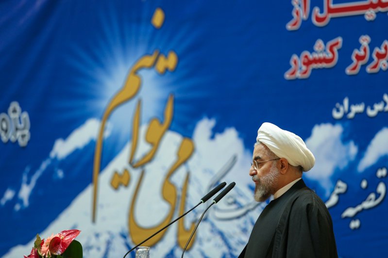 عکس/ شعار احمدینژاد پشتسر روحانی