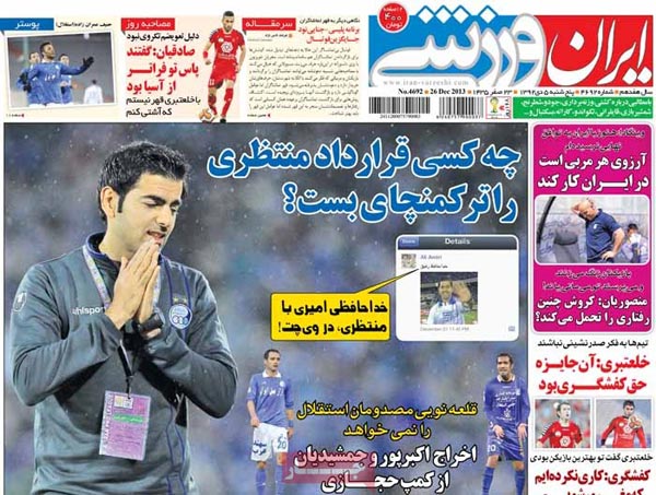 نیم صفحه اول روزنامه های ورزشی؛5 دی