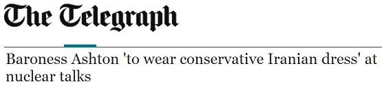 این روزنامه نوشت: یک طراح ایرانی، لباسی ‌برای اشتون طراحی کردی که می‌تواند مشکل خجالت دیپلمات‌های ایرانی در جریان مذاکرات هسته‌ای را برطرف کند. این روزنامه، طراحی این لباس ‌را نشانه‌ای مبنی بر حسن نیت ایران دانسته و به نقل از میترا تمجیدی، طراح آن می‌نویسد که اشتون این لباس را با کمال میل پذیرفته و از آن استقبال کرده است.