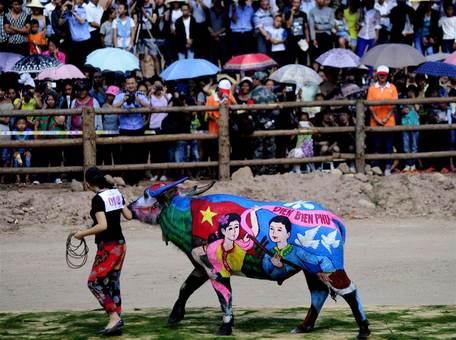 نقاشی بر پیکر بوفالوها در چین-هنرمندان چینی برای تصاحب جایزه ۱۶۰۰۰ دلاری بهترین نقاشی با یکدیگر رقابت میکنند
