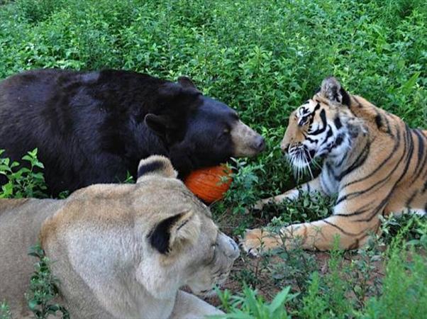 در یکی از باغ وحش‌های آمریکا خرس، شیر و ببر با وجود اهلی نبودن کنار یکدیگر با آرامش در حال زندگی کردن هستند و به بهترین دوستان تبدیل شده‌اند.