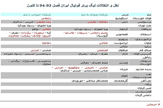 آخرین جدول نقل و انتقال بازیکنان در لیگ برتر فوتبال ایران را می توانید مشاهده کنید .