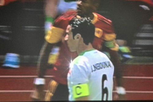 اين تصوير قبل از مصدوميت جواد نکونام گرفته شده. او با بازوبند زرد در زمين حاضر شد تا به تمام حواشي چند روز اخير پايان دهد.
