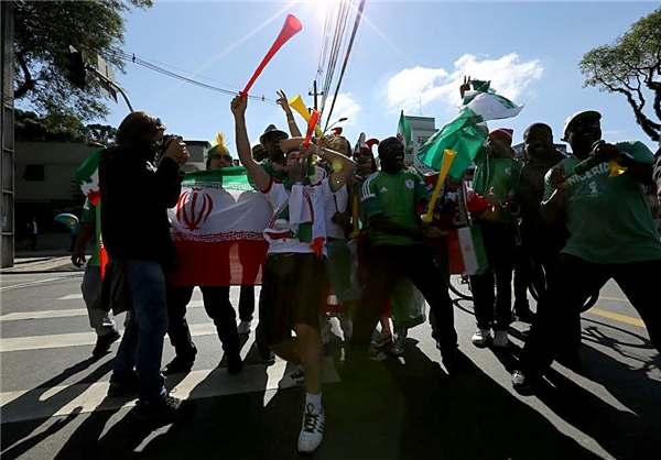 تماشاگران دو تیم ایران و نیجریه در مقابل استادیوم شهر کوریتیبا با یکدیگر متحد شدند.