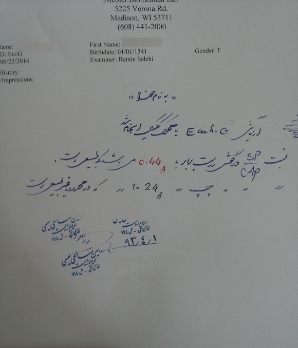 خدمتتون عارض شم كه اين دستخط پزشك نيست ، اديولوژيست يعني شنواسنج كه ليسانس علوم پزشكيه ، دستخطش قشنگه