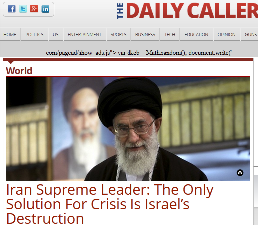 سایت خبری "دیلی کالر" (Daily Caller) در این باره آورده است: رهبر عالی ایران در سخنان خود ابراز کرد که تنها راه حل برای بحران (حاضر) نابودی اسرائیل است و مبارزه مسلحانه می بایست از غزه گسترش یابد.