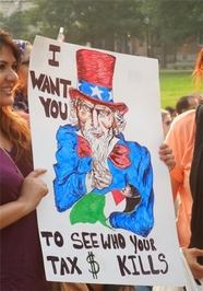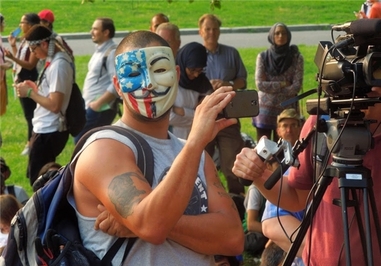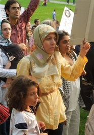 خانمی که در عکس دیگری با عینک دودی کنار من نشسته است، دوست ایرانی من است که در مسجد شهر هاپکینتون با هم آشنا شدیم و امروز همدیگر را به ناگهان میان تظاهرکنندگان دیدیم. مهم نبود اهل کجا بودیم و چه مذهبی داشتیم. هرکداممان که به هم می رسیدیم درد مشترکی برای گفتن داشتیم...دردی از جنس دوستی... .