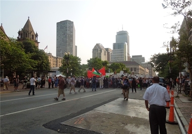 آنجا که شما هستید را نمی دانم اما امروز "روز قدس" برای اولین بار در بوستون برای حمایت از مردم مظلوم غزه ، تظاهرات و راهپیمایی شد. من که این چند هفته فقط اشک ریخته بودم و بر سر و سینه کوبیده بودم بالاخره جایی پیدا کردم تا فریاد فروخورده ام را بلند کنم. ته صف راهپیمایان بودیم و صدای بلندگوهای جلو نمی رسید. دیدم اینجور نمی شود. آمده بودم داد بزنم. نیامده بودم راه بروم این بود که دستهام را دور دهانم گرفتم و فریاد زدم که "From the river to the sea, Palestine will be free" . همسرم بعد از من فریاد زد و مردها و زنهای دیگر دور و برم به دنبال او. انقدر فریاد زدم "Dear Gaza don't cry... Palestine will never die..." که حالا صدایم در نمی آید.