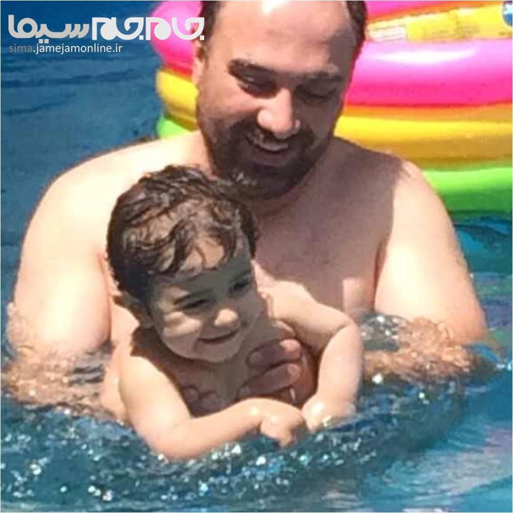 برزو ارجمند این عکس از پسرش را در اینستاگرام منتشر کرد و زیرش نوشت: «اولین آب تنی پدر و پسری»