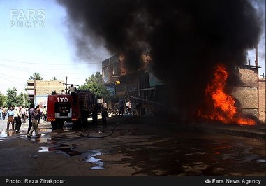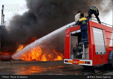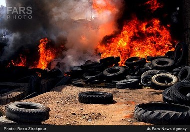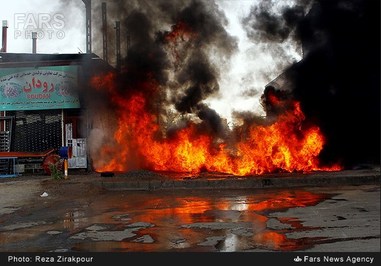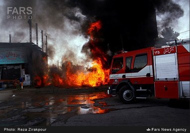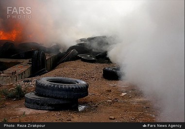 تصاویر/ آتشسورزی انبار لاستیک در زرند