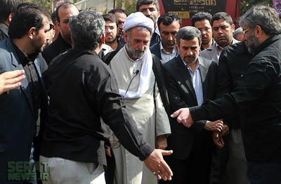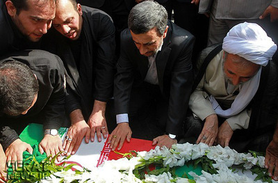 تصاویر/ تشییع پیکر پدر شهیدان صادقی با حضور احمدینژاد