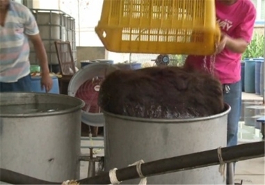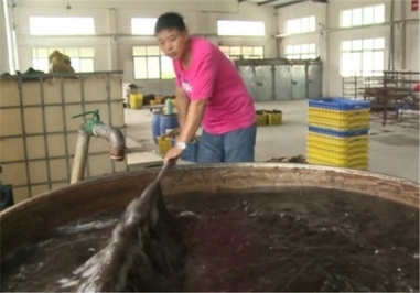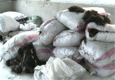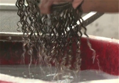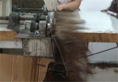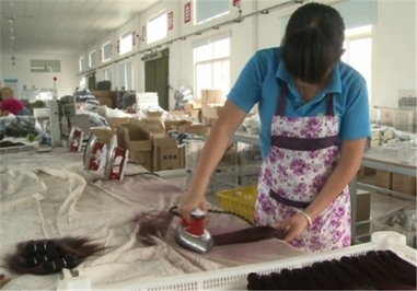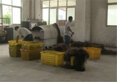 Zhang Qing یک کارگر 23 ساله میگوید در کارخانه این موها قبل از اینکه در بشکه آب جوش انداخته شود، ضد عفونی میشوند بعد داخل آب جوش انداخته شده سپس رنگ آمیزی میشوند؛ برخی موها با اتو صاف و برخی فردار میشوند؛ در یک روز 1500 مو توسط هر نفر با چرخ خیاطی دوخته میشود.