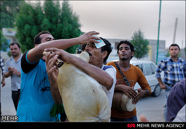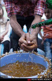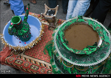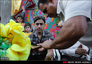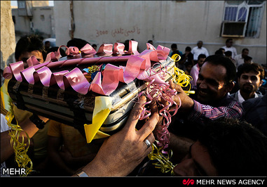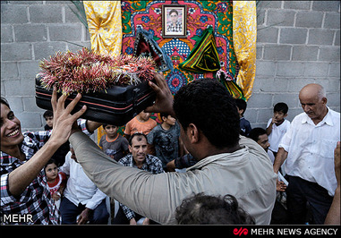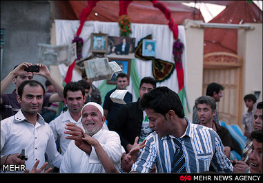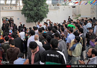 مراسم حنا بندان عصر روز عروسی آغاز می شود و شخصی ، حنا را آماده و نزد داماد می آورد ، در این هنگام فرد دیگری چمدانی که لباسهای داماد در آن قرار دارد را نزد داماد آورده و به بقیه نمایش می دهد . در طول مراسم گروه موسیقی به نوازندگی می پردازد . پس از گذاشتن حنا روی دست ها و پاهای داماد بلافاصله آن ها را شسته و داماد آماده می شود تا مسافتی را تا محلی معین با همراهی شرکت کنندگان در مراسم طی نماید . در محل مورد نظر دوستان داماد وی را لباس پوشانده و اعضای خانواده داماد منتظر می مانند تا داماد سر رسیده و بر روی او نقل و اسکناس بریزند و پس از تبریک اعضای خانواده به داماد مراسم به پایان می رسد