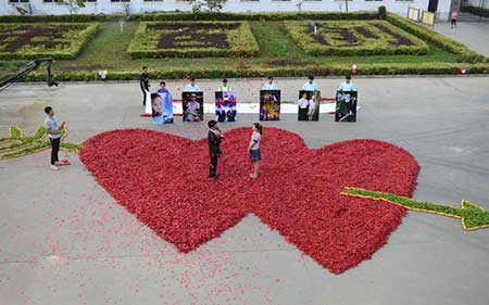 در استان هبي چين کارمند جواني با 99999 فلفل قلبي ساخت و داخل اين قلبها در کارخانه فلفل سازي از دختر مورد علاقه اش درخواست ازدواج کرد.