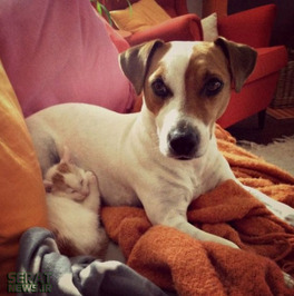 پپو سگی نر از نژاد جک راسل تریر و ساکن ایتالیا است. آن چه موجب شهرت این سگ شده علاقه وی به مراقبت از بچه گربه ها است. پپو نه تنها با بچه گربه ها بازی می کند بلکه همانند یک مادر مهربان به آنها رسیدگی می کند. همچنین، پپو دارای یک برادر گربه به نام "گس" است که در تصویر آخر این مجموعه می توانید آنها را در کنار هم مشاهده کنید.