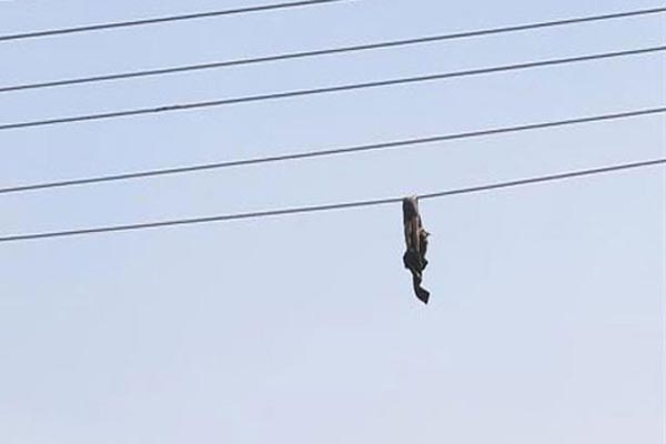 حمله موشکی جدایی طلبان اوکراین به تانک ارتش در شرق این کشور موجب شد یک سرنشین این تانک پس از پرتاب به هوا در ارتفاع 20 متری از سیم برق آویزان بماند.