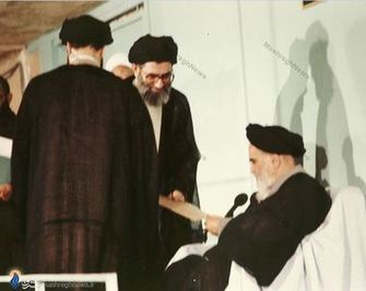 تصاویر/ مراسم تنفیذ آیت‌الله خامنه‌ای توسط امام(ره)