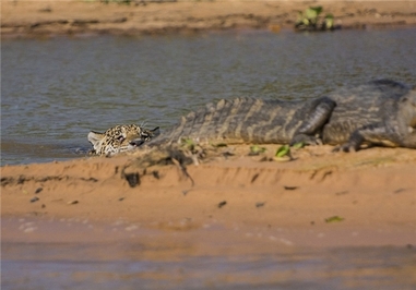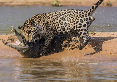 تصاویر/ کروکودیلی که طعمه پلنگ شد