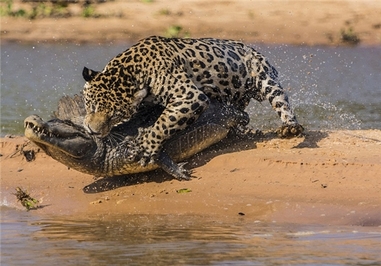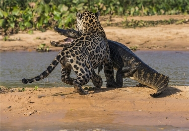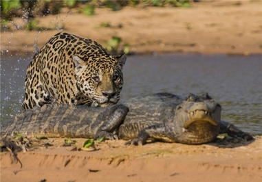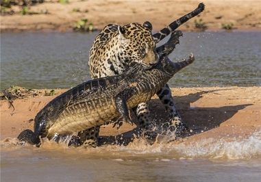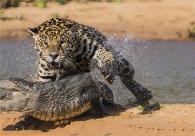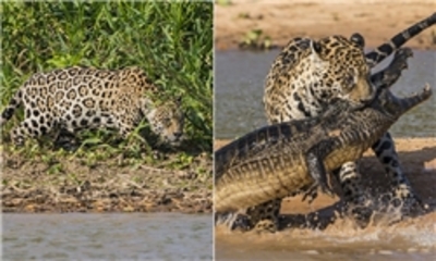 همیشه در جدال کروکودیل و حیوانات، شاهد نابودی حیوانات ضعیفتر در میان دندانهای تیز این حیوان پرزور و قدرت بودهایم اما این بار تصاویری را مشاهده میکنید که در این جدال این حیوان پرزور، خود طعمه میشود.در تصاویر زیر جدال پلنگ با کروکودیل و گرفتار شدن این خزنده پر زور و قدرت در زیر بازوان و چنگال پلنگ را مشاهده میکنید.