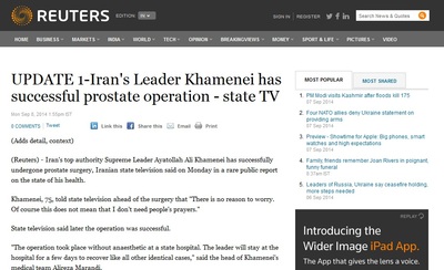 بسیاری از رسانه ها از جمله خبرگزاری ها و سایت های بین المللی، به زبان های مختلف به موضوع عمل جراحی امروز رهبر انقلاب پرداخته و اکثر آنها ضمن اشاره به معمولی خواندن این عمل، آن را موفقیت آمیز خواندند.