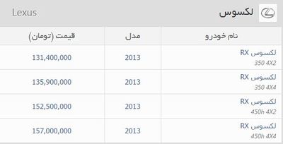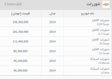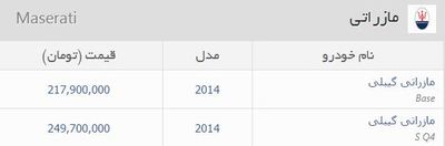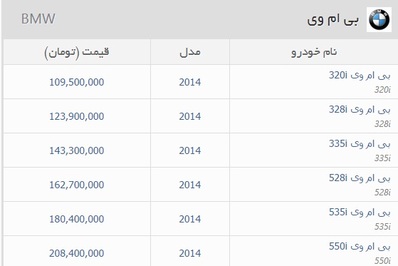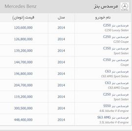 قیمت تمامی خودروهای وارداتی در مناطق آزاد ایران اعم از کیش، قشم ، اروند، انزلی و ... در تاریخ 17 شهریور ماه 93 به شرح زیر است:منبع: صبحانه