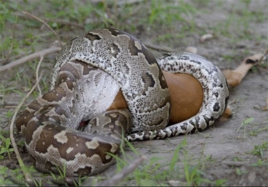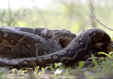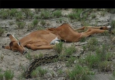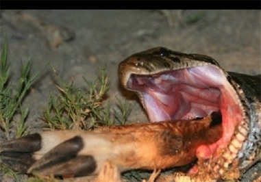 تصاویر/ لحظه بلعیدن طعمه‌ توسط مار