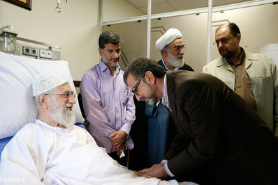 جمعی از هنرمندان و ورزشکاران عصر روز گذشته با حضور در بیمارستان از رهبر معظم انقلاب عیادت کردند. تازهترین تصاویر از حضور هنرمندان در بیمارستان منتشر شد.