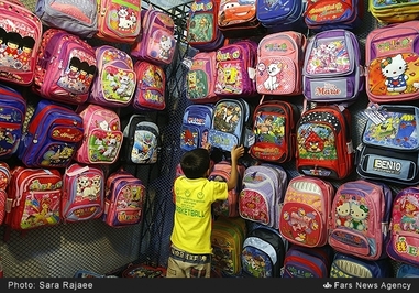 در بخش کیف مدرسه شاید اندک غرفهای را میتوان یافت که به ارائه کیف مدرسه بدون درج تصاویر غربی پرداخته باشد به گونهای که اکثر کیفها از جنس چینی و بدون کیفیت اما با قیمتهای بسیار بالا بودند.