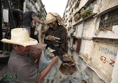 صراط: قبرستان "وربنا" در پایتخت گواتمالا پر است از دخمه هایی که به صورت استیجاری در اختیار مردگان قرار می گیرد و هر زمان که خانواده مرده ای اجاره بهای آن را پرداخت نکند مسئولین قبرستان دخمه را شکافته مرده را در آورده و یا در گور دسته جمعی به خاک می سپارند و یا در بیرون شهر رها می کنند.