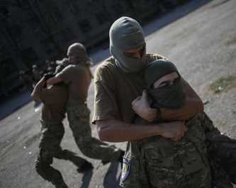 تصاویر زیر تمرینات خشن پلیس ویژه اوکراین را نشان می دهد.