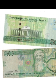 در اسکناس 50 مناتی تصویری نقاشی «عرکوت آتا» شخصیت افسانه‌ای ملی ترکمن‌ها و پشت آن نیز عکسی از ساختمان مجلس ملی ترکمنستان به تصویر کشیده شده‌‏ است.