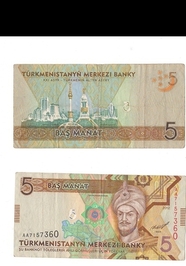 همچنین در اسکناس 5 مناتی نیز تصویری از «سلطان سنجر» شخصیت تاریخی و آخرین سلطان سلسله سلجوقیان و نیز در پشت این اسکناس هم دو برج «برج استقلال» و نیز «برج بیطرفی» جای داده شده‌ است.