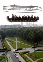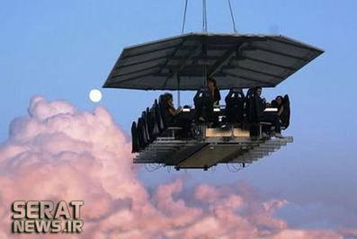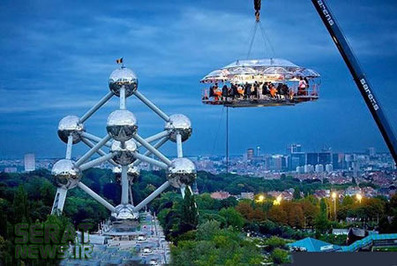 رستوران معلق در بلژیک که از میهمانش در فاصله 50 متری زمین پذیرایی می کند. میز غذا خوری این رستوران با کمک جرثقیل در هوا معلق نگه داشته می شود.