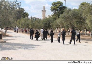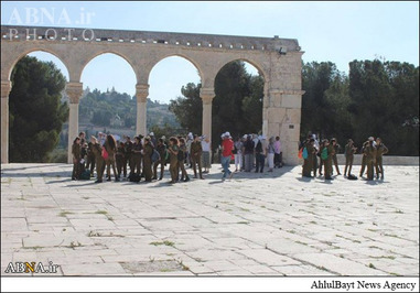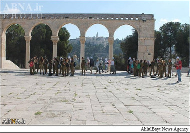 گروهی از شهرک نشینان صهیونیست به همراه ۷۲ سرباز زن اسرائیلی از باب المغاربه وارد مسجد الاقصی شدند.