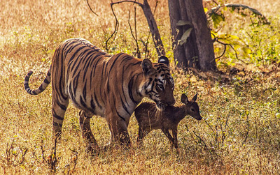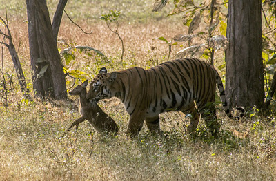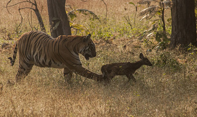 "پاوان مننون" عکاس آماتوری که همراه با یک تور گردشگری به منطقه حیات وحش "تادوبا" در "ماهاراشترا" هند رفته بود در حین عکاسی با دوربین خود در میان درخت ها ماده ببری را در حال بازی با یک بچه آهو دید. پاوان گفته ابتدا آهو را ندیده و تصور می کرده که ببر با خود مشغول بازی است اما پس از گذشت لحظاتی تازه متوجه این پدیده نادر می‌شود. او که بسیار از این حادثه دچار حیرت شده بود به سرعت از این اتفاق نادر عکاسی می کند. به گفته عکاس ببر برای نیم ساعت با این آهو بازی کرده و در طول این مدت هیچگونه تمایلی به خوردن حیوان از خود نشان نداده است. در نهایت نیز در حالی که ببر روی زمین دراز کشیده بود آهو به آرامی از او جدا شده و احتمالا نزد مادر خود باز می گردد. ببر نیز با رفتن بچه آهو او را تعقیب نمی کند و پس از لحظاتی به راه خود می‌رود.