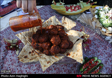 جشنواره غذاهای ایرانی ظهر امروز دوشنبه با حضور مردم تهران در بوستان خیام برگزار شد.