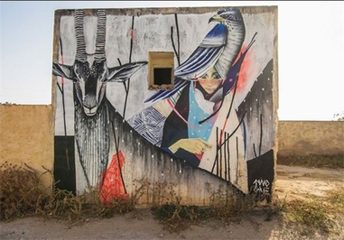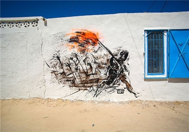 150صراط: نفر از هنرمندان نقاشی‌های خیابانی از 30 کشور در سراسر جهان برای نقاشی بر دیوارهای یک روستا به تونس رفتند؛ برخی از این هنرمندان نقاش از فرانسه و ژاپن بودند.