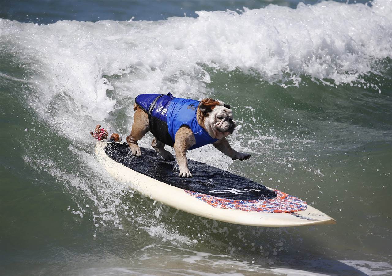 رقابت سگهای موج سوار در هانتینگتون بیچ، کالیفرنیا آمریکا.