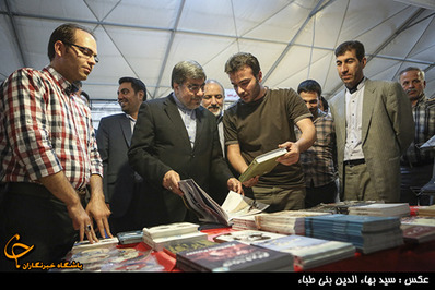 علی جنتی وزیر فرهنگ و ارشاد اسلامی و جمعی از مسئولین لشگری در پنجمین نمایشگاه بین المللی کتاب دفاع مقدس در باغ موزه دفاع مقدس حضور پیدا کردند.