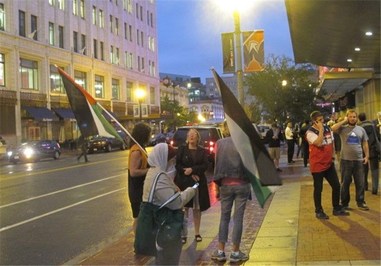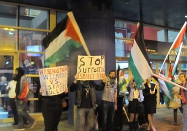 دهها نفر از مردم آمریکا در اعتراض به برگزاری مسابقه بین تیم بسکتبال این کشور با تیم بسکتبال رژیم صیهویستی تظاهرات کردند، معترضان در حالی که پرچم فلسطین را حمل میکردند در مقابل محل برگزاری این مسابقه شعارهایی علیه رژیم صهیونیستی سر دادند.