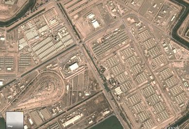 در تصاویر هوایی زیر به موقعیت دقیق لیبرتی اشاره می شود که می تواند مورد استفاده گروه های عراقی معترض به جنایت های منافقین در سالهای اخیر عراق نیز واقع شود.
