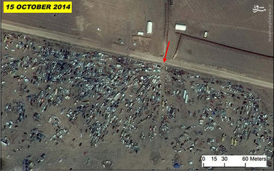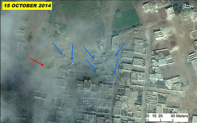 تغییراتی که در تصاویر مشاهده میشود، در مدتی کمتر از یک ماه رخ داده و برخی مناطق آباد این شهر را به بیابانی خشک و خالی تبدیل کرده است. هماکنون بیابانهای اطراف این شهر محل استقرار آوارگان و جادهها نیز کمینگاه عناصر داعش هستند. طی این مدت، هزاران ساختمان تخریب و بسیاری از جادهها به وسیله عناصر داعش مسدود شدهاند.