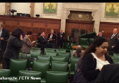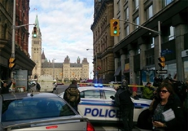 در پی وقوع تیراندازی در ساختمان پارلمان کانادا که همچنان نیز در جریان است، نیروهای پلیس منطقه را به محاصره درآورده و به مردم توصیه کرده‌اند که پناه بگیرند.