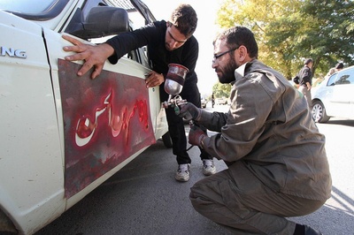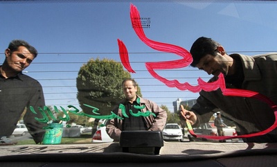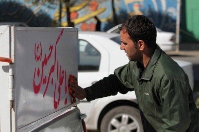 تصاویر زیر ماشین نویسی در آستانه دهه محرم در همدان را نشان می دهد.