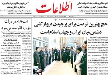 روزنامههای امروز (چهارشنبه، 7 آبان) کشور عناوین صفحه نخست خود را به خبرهایی همچون ،بیانات رهبر معظم انقلاب در دیدار مسئولان حج، جنگ تن به تن در "کوبانی" ،تأیید بنزین وارداتی، خبرهایی درباره دربی پایتخت و جزئیات دستورالعمل جدید استخدام در دولت، اختصاص دادند.