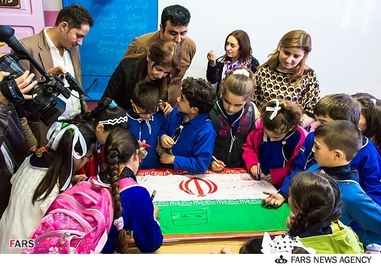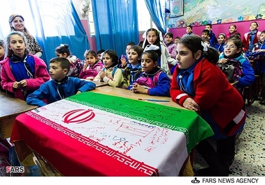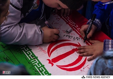 در ادامه این برنامه، دانش آموزان روی پرچم جمهوری اسلامی ایران، پیام خود را به اطفال ایرانی و کشور ایران نوشتند؛ عبارتهایی نظیر «ایران متشکریم»، «سوریه را با هم میسازیم»، «مرگ بر آمریکا»، «دوستت دارم، ایران» و... عباراتی بود که روی پرچم مکتوب شده بود.