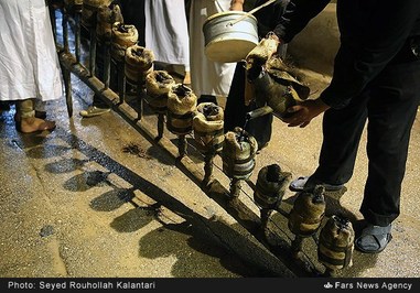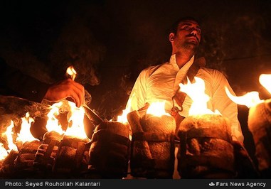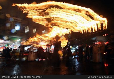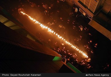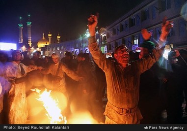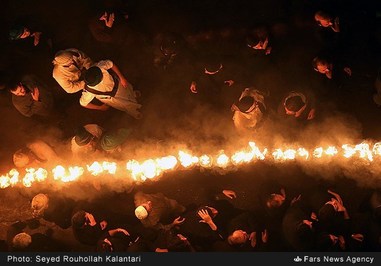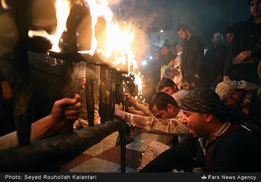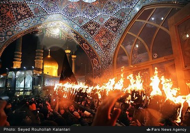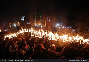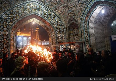 مراسم مشعل گردانی نجفی های مقیم قم در شب هشتم ماه محرم در قم برگزار شد.