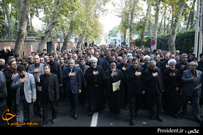 مراسم عزاداری حضرت ابا عبدالله الحسین (ع) پیش از ظهر یکشنبه با حضور حجتالاسلام والمسلمین دكتر "حسن روحانی" رییسجمهوری، معاونان رییسجمهوری، وزرا، رییس دفتر و مشاوران رییسجمهوری، معاونان وزرا و مدیران نهاد ریاست جمهوری در محل نهاد ریاست جمهوری برگزار شد.